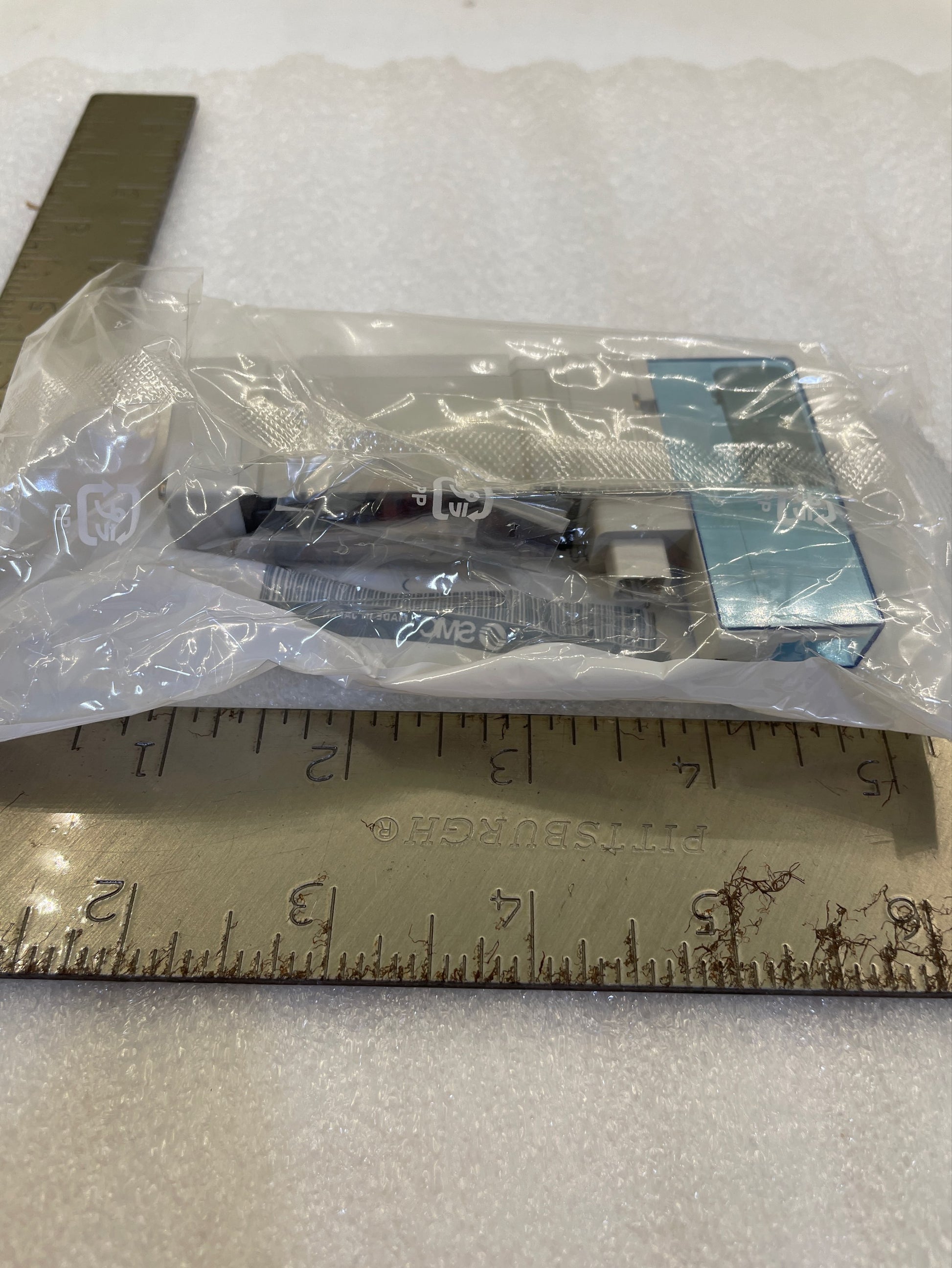 SMC, SY Series 5 Port Solenoid Valve, 2 Position Single, Base Mounted, Rubber Seal, Internal Pilot, 0.7MPa Pilot Valve, 24VDC, W/Light and Surge Voltage Suppressor, Non Polar, Non Locking Push Type Manual Override, Rc Thread